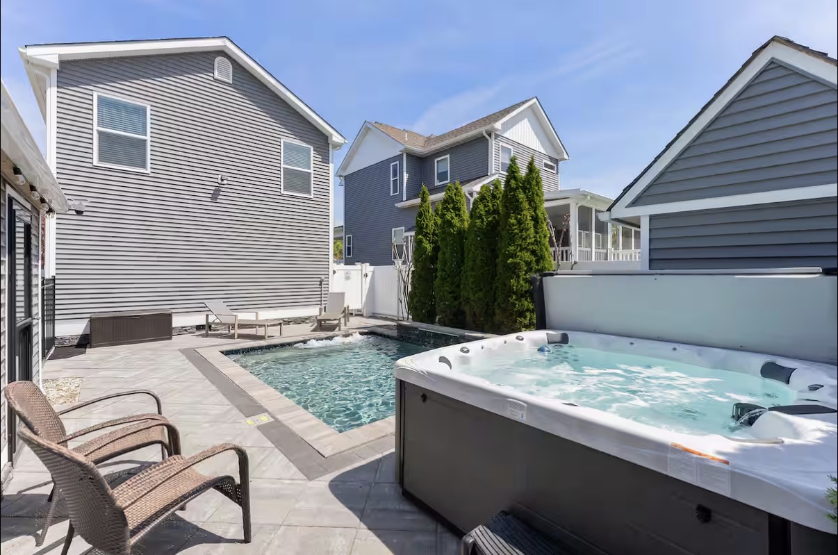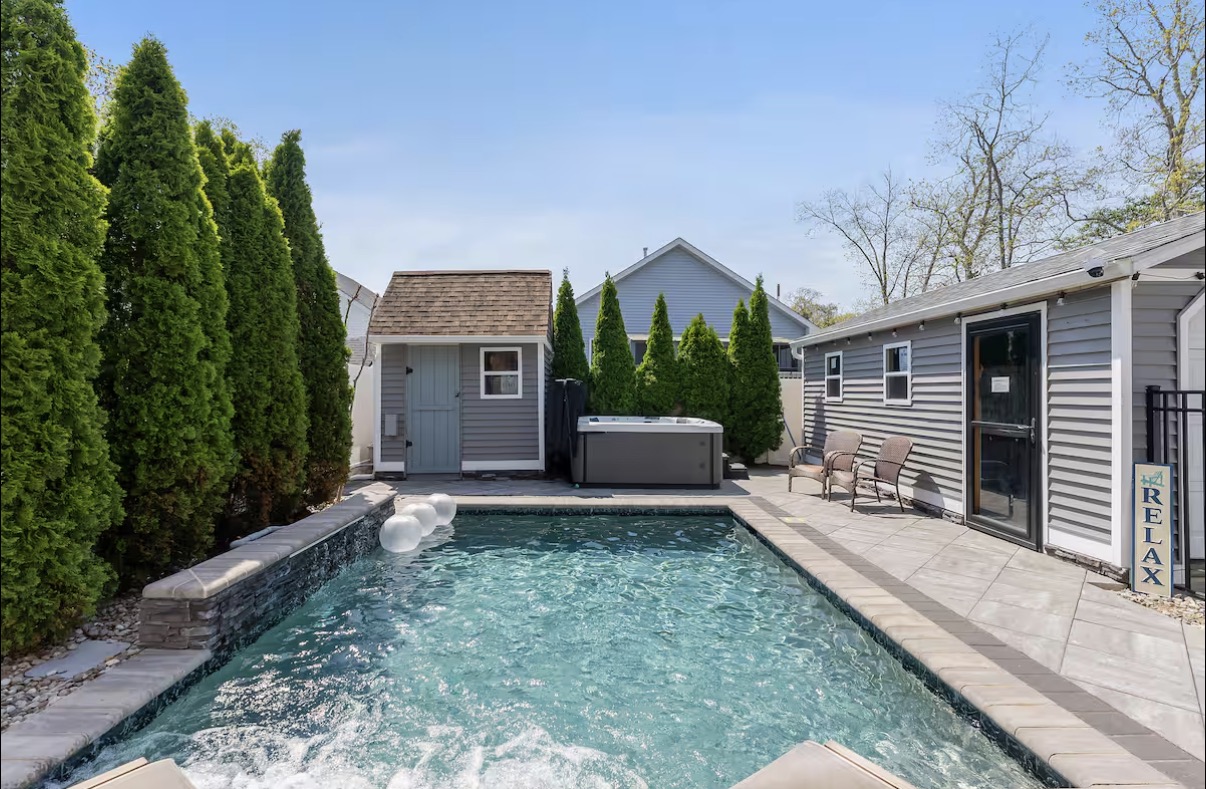 The perfect Oasis to relax by the pool. grill a bbq dinner, take an outdoor shower and hang out after a day at the nearby beaches. Just over a block from the beaches, our Heated Salt Water Inground Pool Oasis has a Master Spa Hot Tub, and a large outdoor patio.